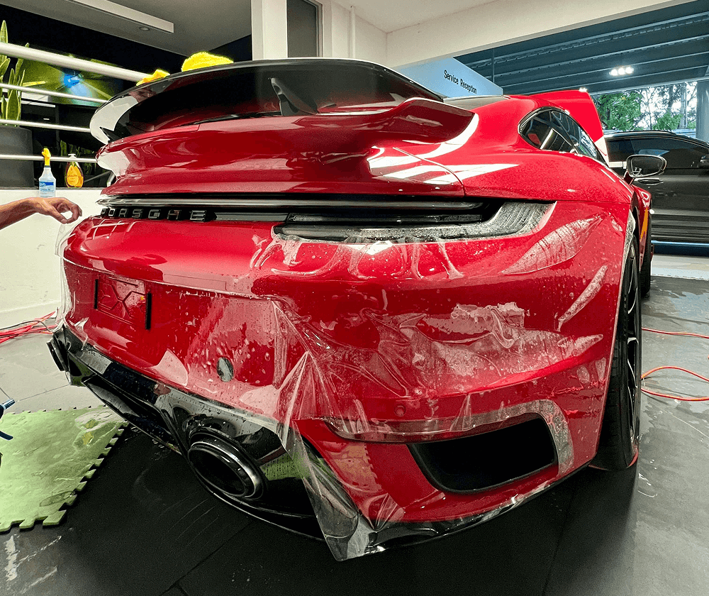 La instalación se realizó mediante corte computarizado específico para el diseño del Porsche, lo que garantiza un ajuste perfecto sin necesidad de cortes manuales ni alteraciones en la carrocería. Además, la aplicación profesional asegura que el acabado sea invisible, sin burbujas ni bordes expuestos, manteniendo la estética original del vehículo.